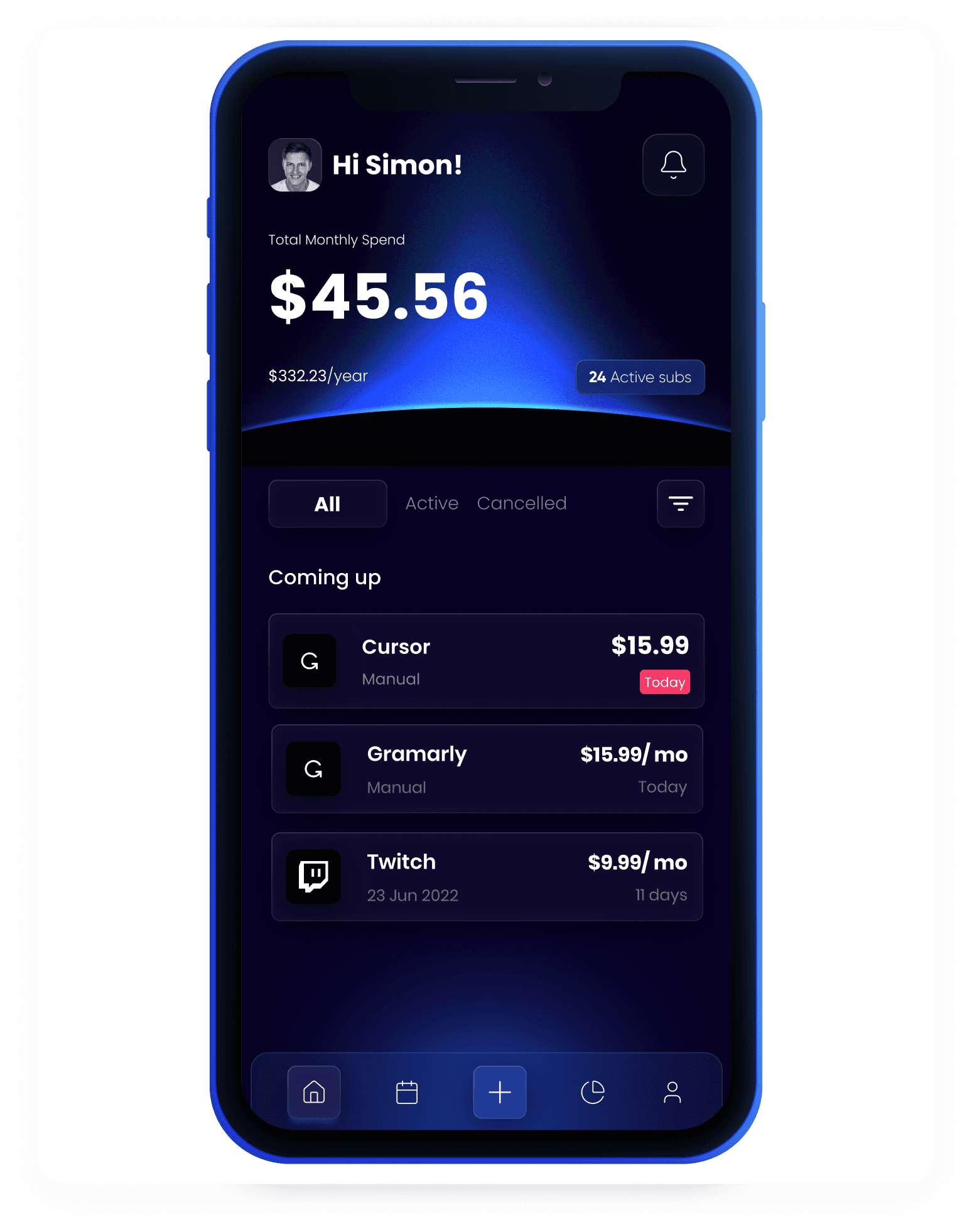 See all your subscriptions categorised in one place with complete visibility over cost and renewal dates.